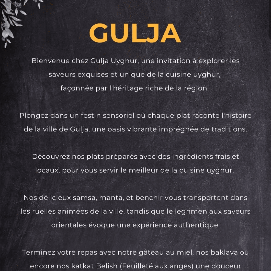 Dive deep into the Uyghur culture and embark on a true journey of the senses. Situated in the heart of the Neudorf area, our restaurant invites you to discover a traditional, generous and tasty cuisine, that will stimulate your taste buds while telling you our story.